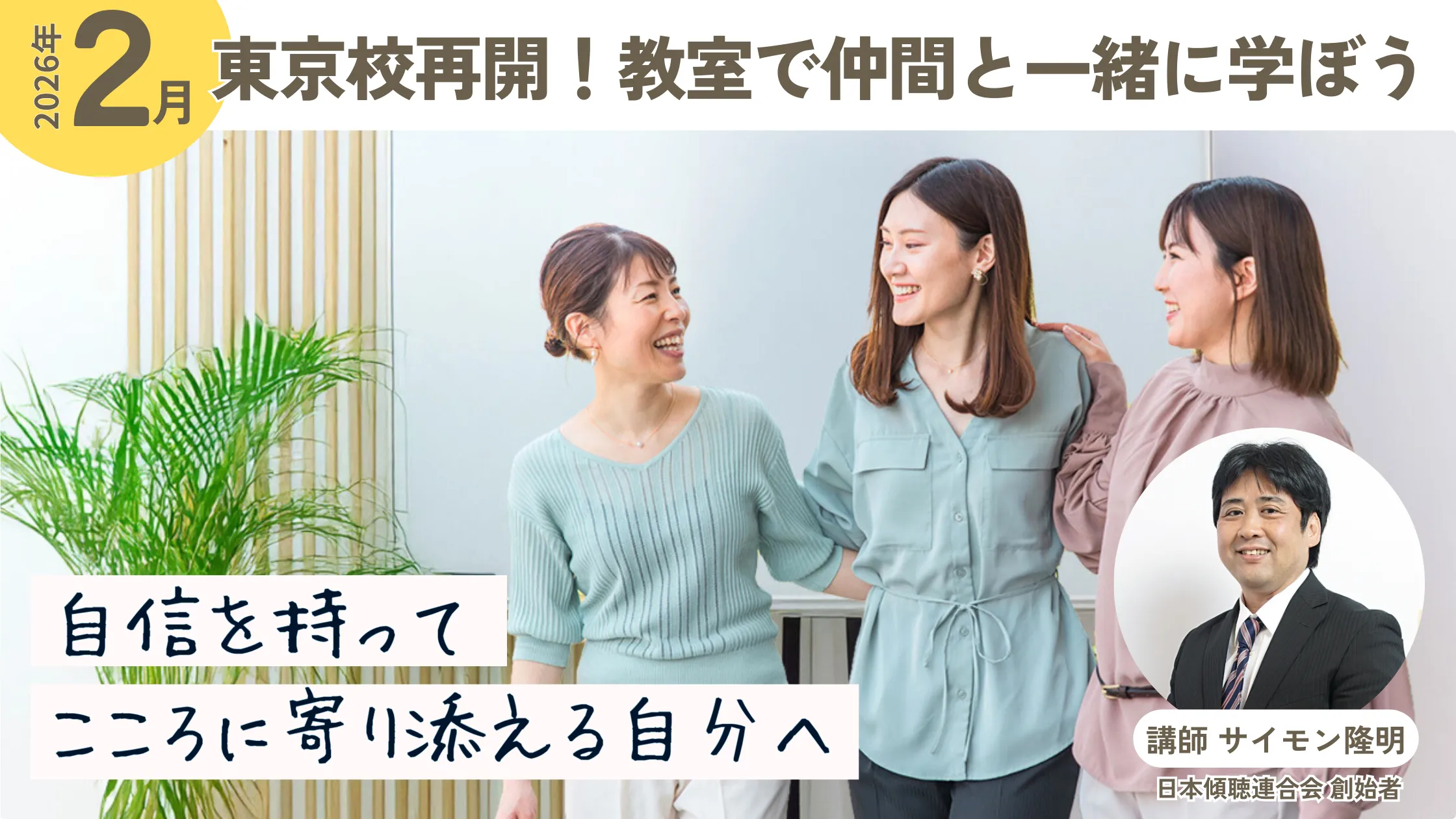 数多くの受講生やクライアントの人生に寄り添ってきた、サイモン隆明先生が、再開を迎える東京校の教室にて登壇します。