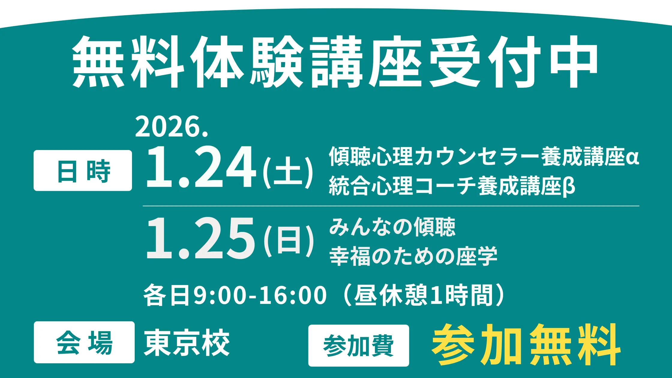 2026年2月の東京校開講に先がけて、無料で受講いただける体験講座を開催します。
